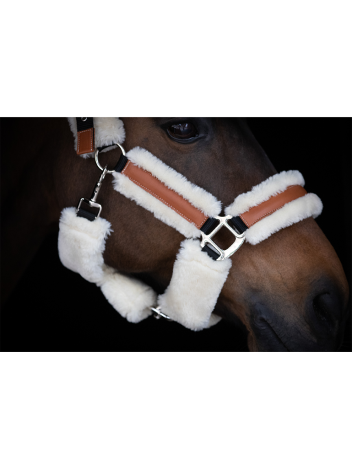 Le cuir sur la muserolle et sur les deux montants de chaque côté est entouré d'un véritable faux-mouton.