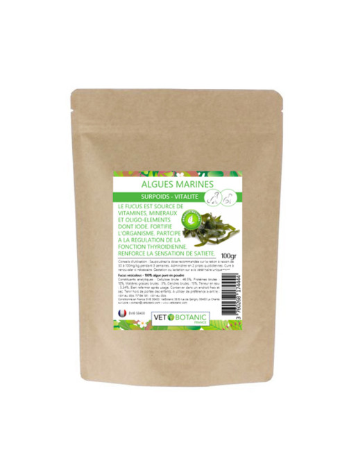 L’algue marine est également source d’alginate, substance anti-acide destinée à contrer les effets des reflux gastriques provoque également une sensation de satiété utile pour les animaux en surpoids.