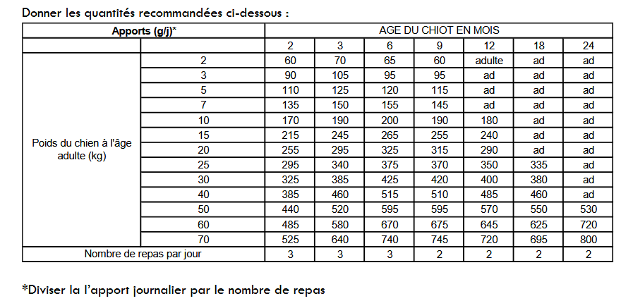 Idéalement répartir les quantités indiquées sur plusieurs repas.