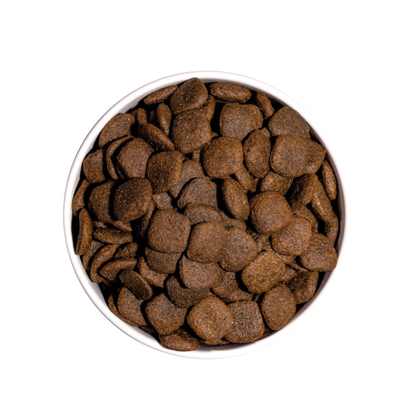 Composition : Poulet déshydraté (24 %), poulet frais* (15 % min. avant la cuisson), dinde fraîche* (15 % min. avant la cuisson), riz complet* (11 %), pomme de terre déshydratée* (8 %), graisse de volaille (préservée avec des antioxydants naturels), racines de manioc* (6 %), hydrolysat de saumon, légumes et fruits frais avant la cuisson (pomme* 1 %, carotte* 0,5 %, citrouille* 0,5 %), saumon déshydraté (2 %), protéines de poulet hydrolysées, levure de bière* (1 %), oeuf déshydraté* (1 %), graines de lin* (1 %), huile de saumon (préservée avec des antioxydants naturels), sel gemme*, racines de chicorée (FOS)*, extrait de levure (MOS), algues marines déshydratées* (500 mg/kg), glucosamine (500 mg/kg), yucca shidigera, chondroïtine sulfate (100 mg/kg), airelles* (100 mg/kg), thé vert* (80 mg/kg), échinacée* (80 mg/kg), fleur de camomille* (80 mg/kg), fenouil* (80 mg/kg). *Ingrédients naturels