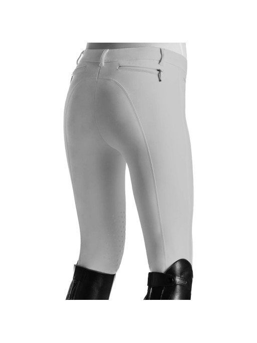 Doté de patch grip à l'intérieur des genoux, il apporte une stabilité certaine sur la selle d'équitation. L'intérieur de la ceinture a également été recouvert de cette même matière grip pour un meilleur maintien de la chemise à l'intérieur du pantalon.