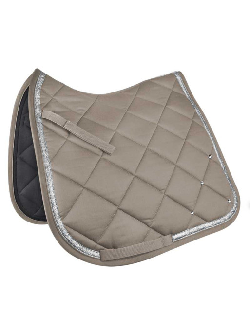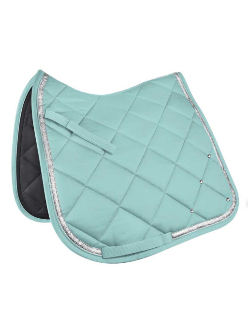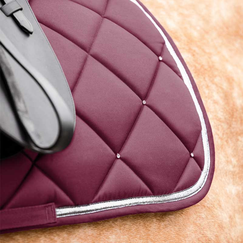 Permettant au cavalier de parfaire l'apparence de son cheval, ce tapis d'équitation est une valeur sûre pour les jours de concours. Décoré d'une bande brillante et de petits cristaux dans le coin arrière, il affiche un look lumineux tout en mesure.